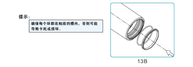 徹底檢查每節(jié)缸筒,充分潤(rùn)滑油封套件和油封槽,給每節(jié)缸筒裝上新油封套件。由導(dǎo)向帶開(kāi)始,然后是油封和 O 型圈、防塵圈,切勿把油封裝反有油封溝槽的一面朝缸筒里側(cè)裝完油封和 O 型圈、防塵圈。" />