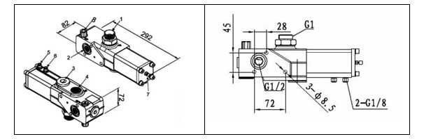 4、油缸接口(C) 5、氣控閥/舉升接口 6、氣控閥/下降接口